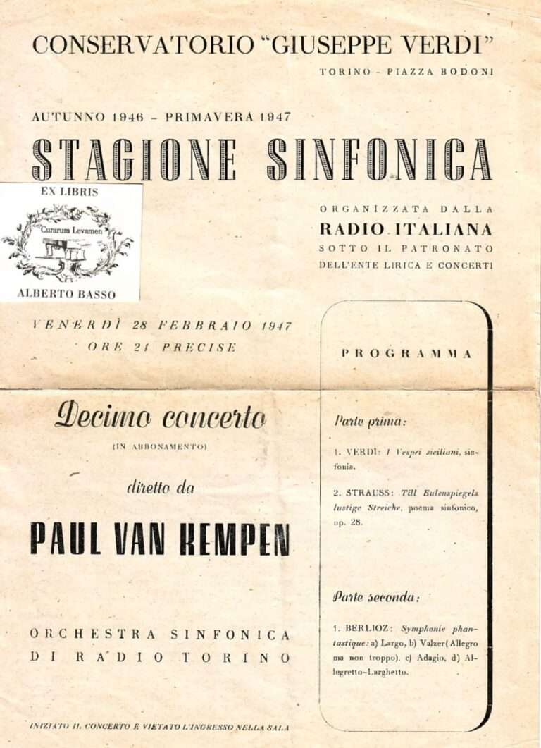Riordino, catalogazione e studio dei documenti manoscritti e a stampa conservati nell’Archivio Musicale dell’Orchestra Sinfonica Nazionale della Rai