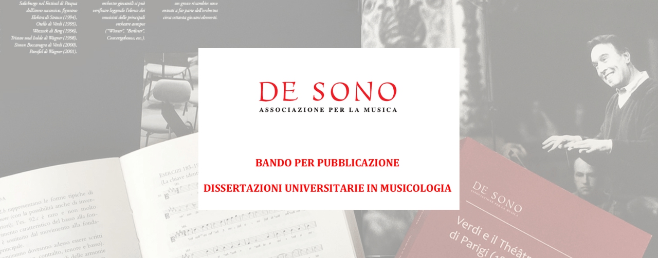 Vi segnaliamo la pubblicazione di un bando sulle dissertazioni musicologiche da parte dell’Associazione DE SONO.