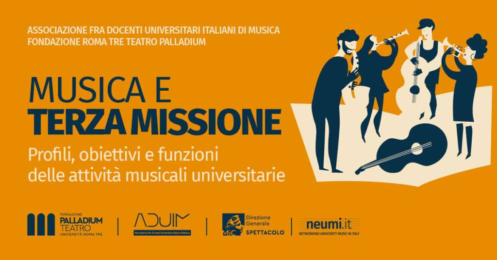 Nel corso del 2018 l’ADUIM ha istituito un gruppo di lavoro dedicato alla Terza missione, coordinato da Luca Aversano, con lo scopo di valorizzare il ruolo delle attività musicali emusicologiche in questo nuovo campo di interesse delle università italiane, cui anche l’ANVUR sta dedicando specifica attenzione come riferimento importante nell’ambito dei processi di valutazione. Questa sezione del sito presenta pertanto gli esiti di un’indagine rivolta a censire le attività di Terza missione nei nostri atenei, con particolare riguardo alle attività musicali dei gruppi studenteschi (cori, orchestre, ensemble ecc.), senza tuttavia dimenticare le iniziative di carattere puramente musicologico (conferenze, progetti divulgativi, rapporti con musei, ecc). Le schede contenute della sezione, illustrative delle singole situazioni locali, restituiscono un panorama ricco e articolato, evidenziando il contributo essenziale delle discipline musicali allo sviluppo della Terza missione. Tutti i materiali sulle attività musicali e musicologiche delle università italiane costituiscono una banca dati condivisa con NEUMI (Networking University Music in Italy: www.neumi.it), un progetto ADUIM/Fondazione Roma Tre Teatro Palladium frutto delle iniziative della commissione di Terza Missione.