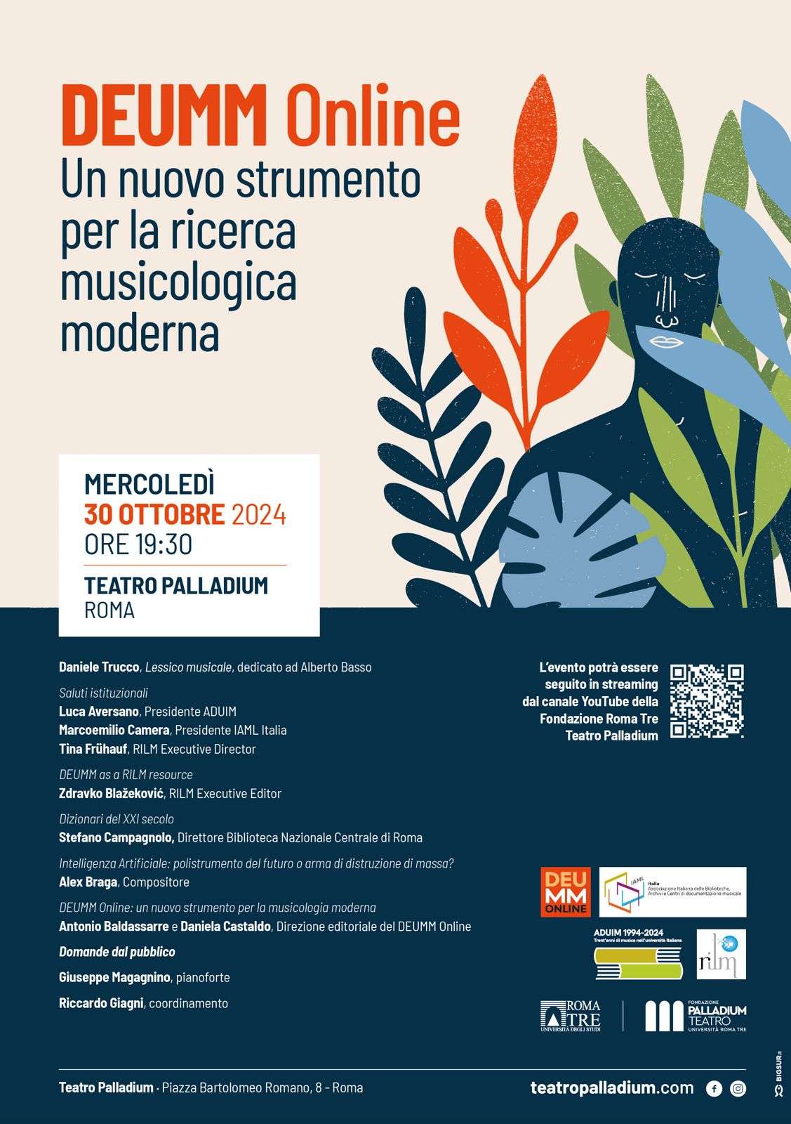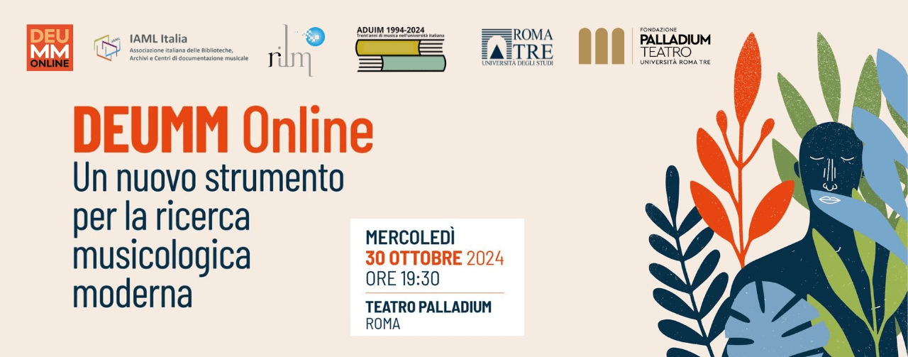 Mercoledì 30 ottobre 2024, alle ore 19.30, si terrà al Teatro Palladium dell’Università Roma Tre l’evento DEUMM Online: Un nuovo strumento per la ricerca musicologica moderna.