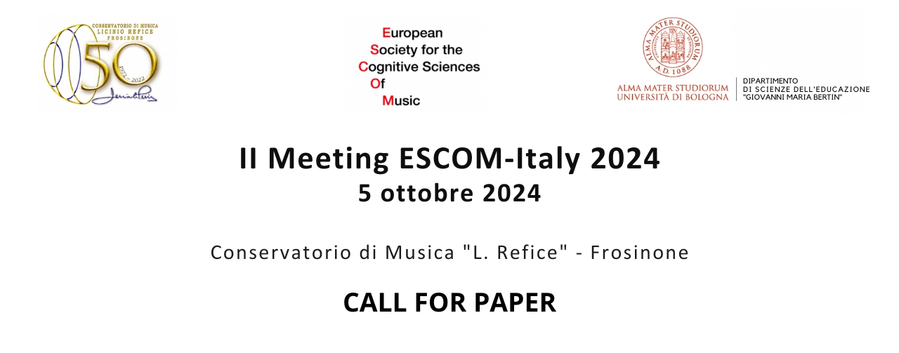Vi segnaliamo una call for paper per il II Meeting ESCOM-Italy che si terrà il 5 ottobre 2024 al Conservatorio di Musica “L. Refice” di Frosinone.