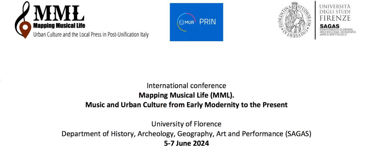 Informiamo dell’invito al call for papers per il Convegno internazionale di studi Mapping Musical Life (MML). Musica e cultura urbana in età moderna e contemporanea che si terrà nel giugno 2024 presso l’Università di Firenze (Dipartimento di Storia, Archeologia, Arte e Spettacolo). Le proposte dovranno essere inviate entro il 31 gennaio 2024.