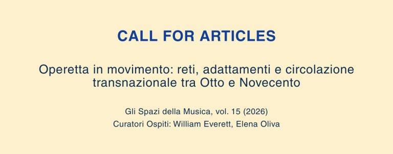 Operetta in movimento. Gli Spazi della Musica, vol. 15 (2026) | CALL FOR ARTICLES