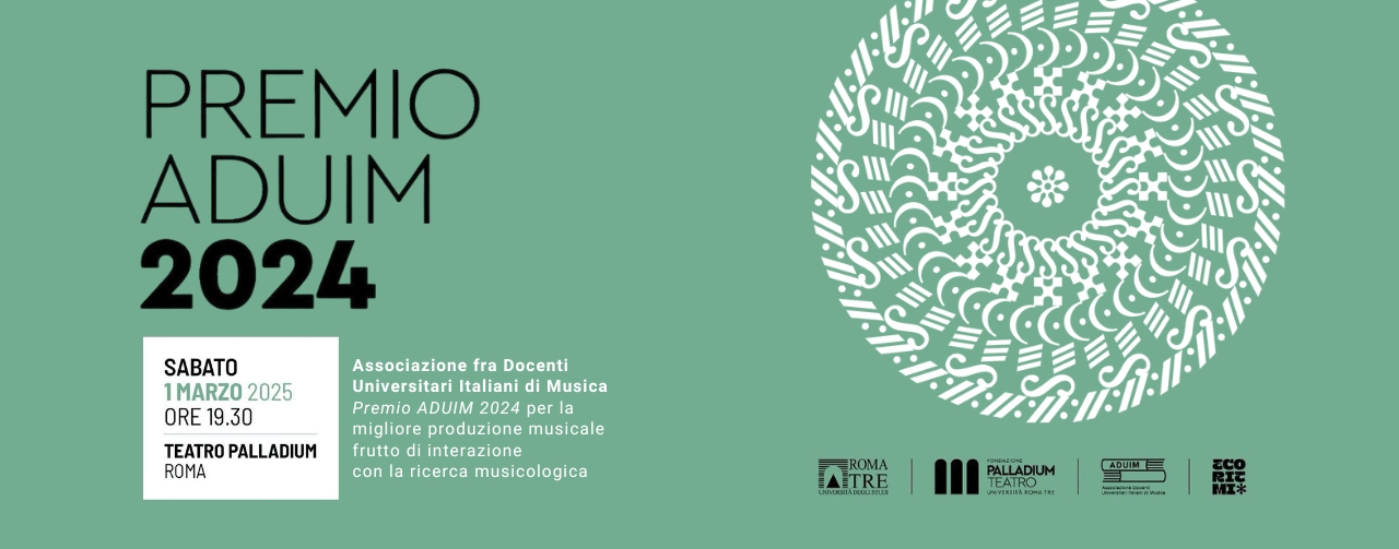 La seconda edizione del Premio ADUIM si terrà il 1° marzo 2025 al Teatro Palladium dell’Università Roma Tre, con un programma ricco di approfondimenti e momenti musicali, condotto da Luca Aversano (Università Roma Tre) e Susanna Pasticci (Sapienza Università di Roma). L’evento prevede, oltre alla cerimonia di premiazione, un concerto dell’Ensemble Odhecaton e una tavola rotonda sul rapporto tra pensiero musicologico e pratiche esecutive della musica vocale, condotta da Marco Bizzarini e con la partecipazione di Giovanni Sgarìa (direttore artistico Arcana), Paolo Da Col (Conservatorio di Venezia), Antonella D’Ovidio (Università di Firenze), Dinko Fabris (Università della Basilicata), Andrea Malvano (Università di Torino), Rodobaldo Tibaldi (Università di Pavia-Cremona).
