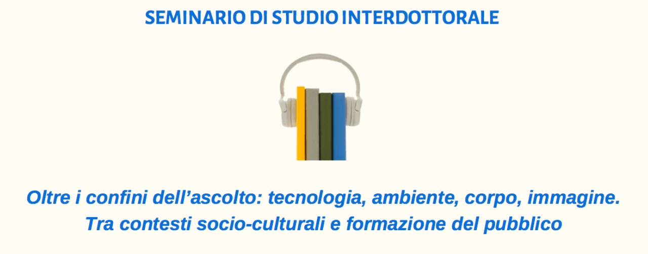 Seminario interdottorale “Oltre i confini dell’ascolto”, promosso dal dottorato di Roma Tre (convenzionato con Teramo, Conservatorio Santa Cecilia, Accademia Nazionale di Danza, Accademia di Belle Arti di Roma), in collaborazione con i dottorati di Sapienza, Tor Vergata e Catania.